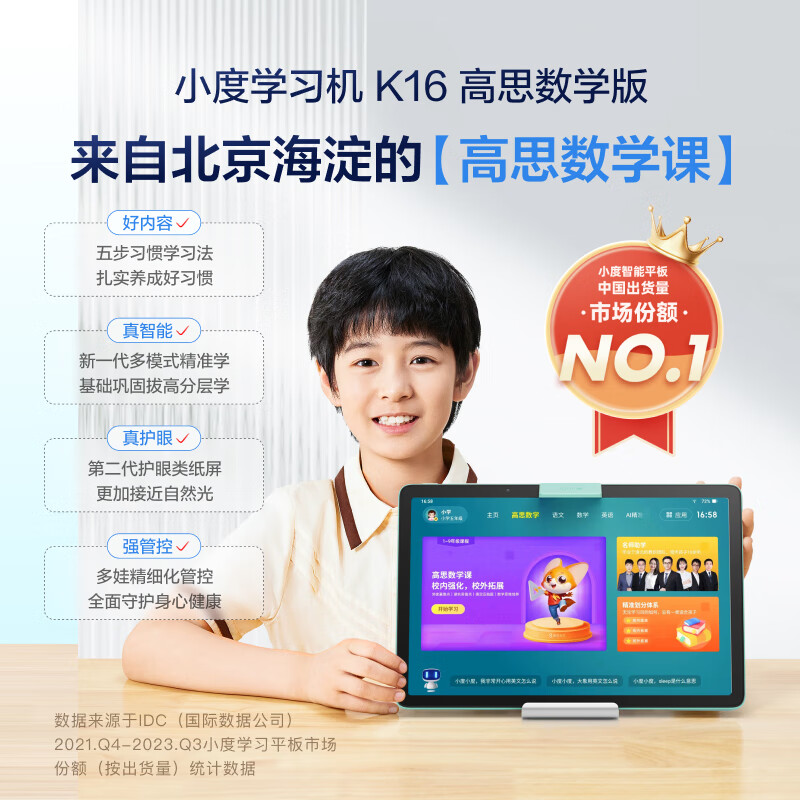 小度学习机K16高思数学版 (6+256GB)小学初中高中学生平板 全科全龄全免费 5步习惯学习法 护眼价格:2999.00元!