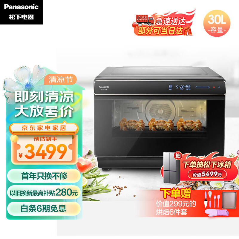 松下 Panasonic 电烤箱 NU-SC300B 蒸烤箱 蒸烤炸 直喷三段蒸汽 平面烘烤技术 30L容量 智能菜单价格:3299.00元!
