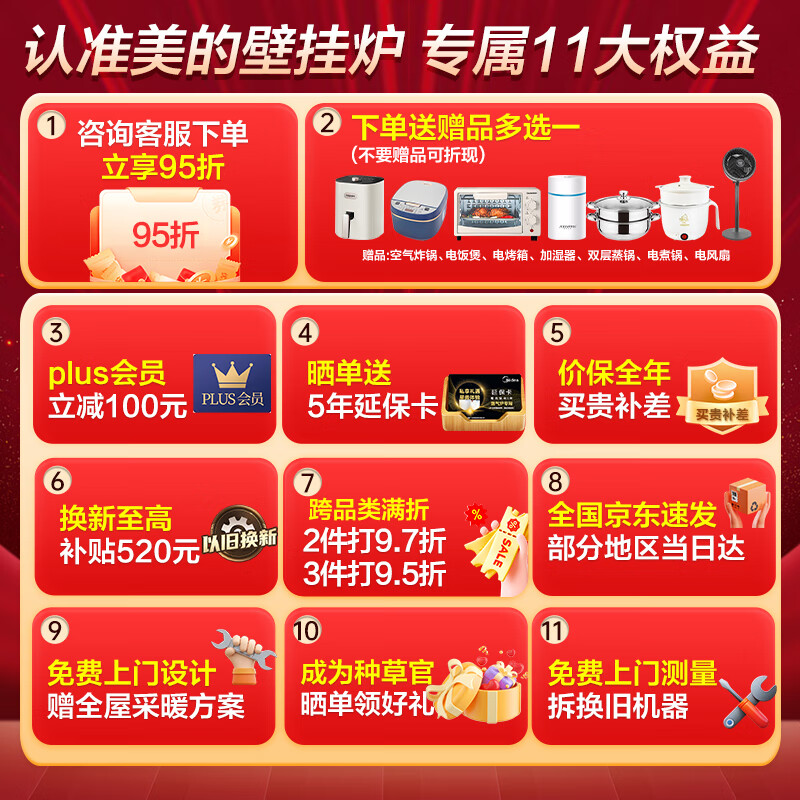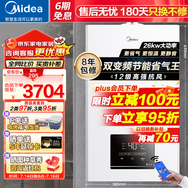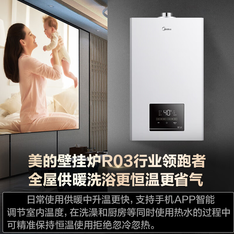 美的(Midea)壁挂炉天然气 恒温双变频省气采暖炉节能家用燃气壁挂锅炉地暖洗浴两用热水器12级抗风分段燃烧R03 26KW 【高效板式换热更恒温】适用≤180㎡价格:4999.00元!