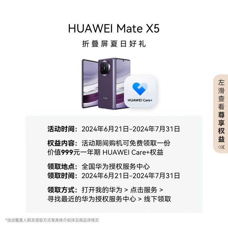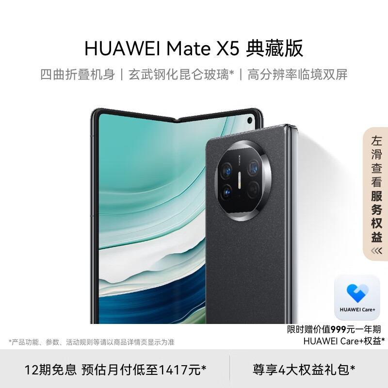 华为(HUAWEI) Mate X5 典藏版 折叠屏手机 16GB+1TB 羽砂黑价格:16999.00元!