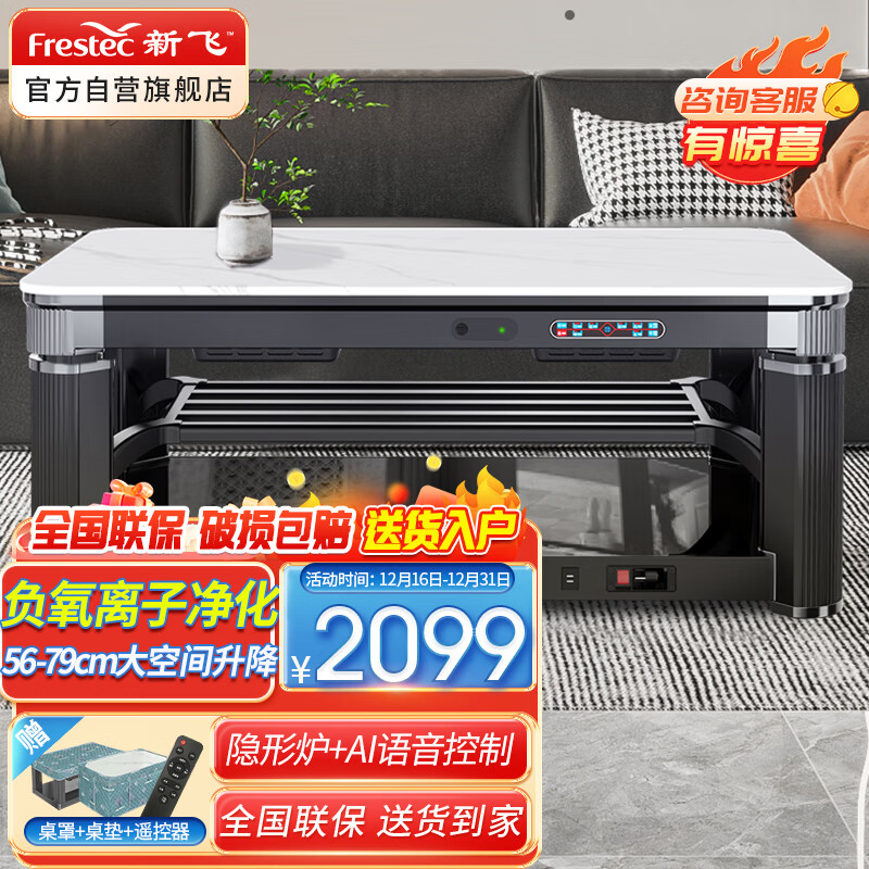 新飞 电暖桌1.38米长方形烤火炉茶几带语音控制升降电烤炉取暖器家用取暖桌节能餐桌烤火桌XYT-2019SJ价格:3639.00元!