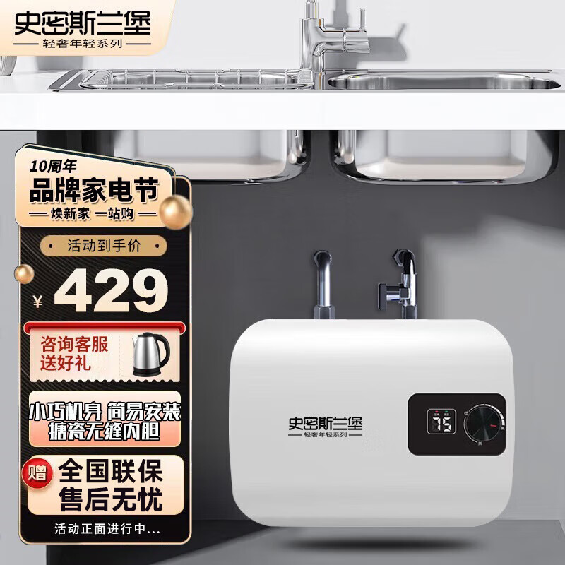 史密斯兰堡电热水器储水式小厨宝家用8升1600W上出水台下式厨宝宝旋钮数显款暖水宝【自行安装】BLJ-G08价格:369.00元!