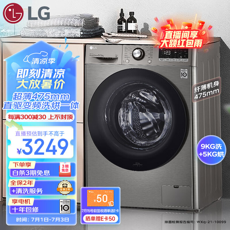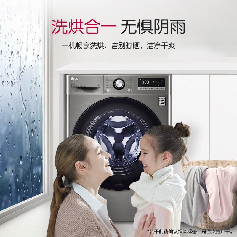 LG9KG超薄滚筒全自动洗衣机洗烘一体 家用超薄 自动烘干14分钟快洗 智能手洗 高温洗 银 FCY90M2P价格:3659.00元!