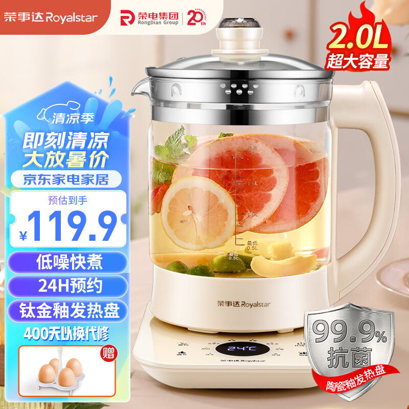 荣事达(Royalstar)养生壶 烧水壶煮茶器电热水壶2L含钛发热盘多段保温迷你玻璃花茶壶智能恒温电水壶YSH2020价格:159.00元!