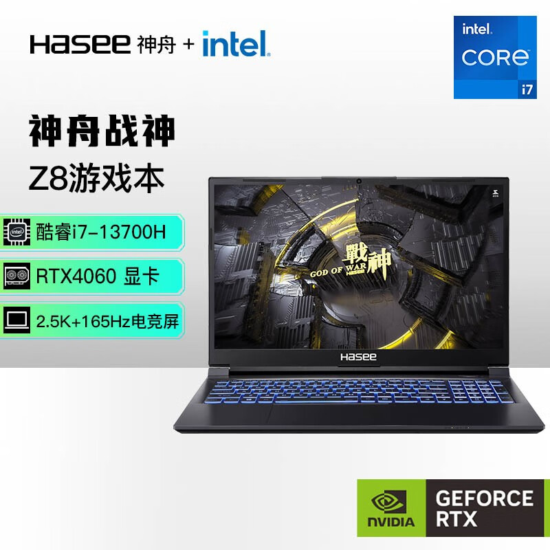 神舟(HASEE)战神Z8R7 13代英特尔酷睿i7 15.6英寸笔记本电脑(13代i7-13700H RTX4060 165Hz 2.5K电竞屏)价格:7299.00元!