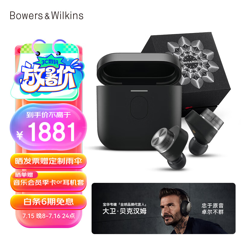 宝华韦健【贝克汉姆代言】Pi7二代礼盒版 真无线主动降噪HIFI运动蓝牙耳机 B&W音乐入耳式Pi7s2 苍墨黑价格:1999.00元!