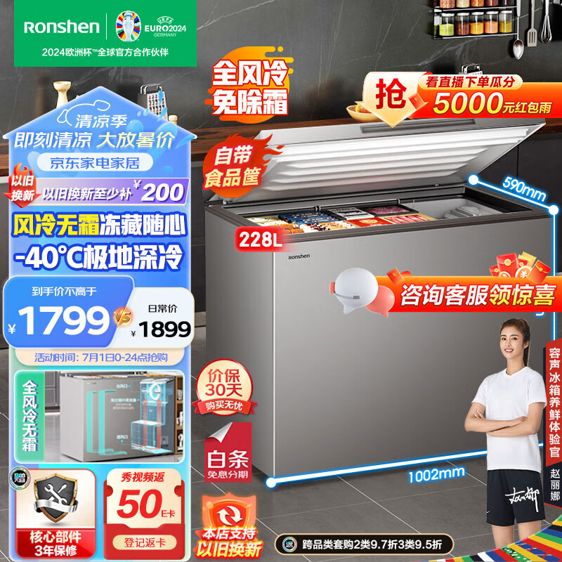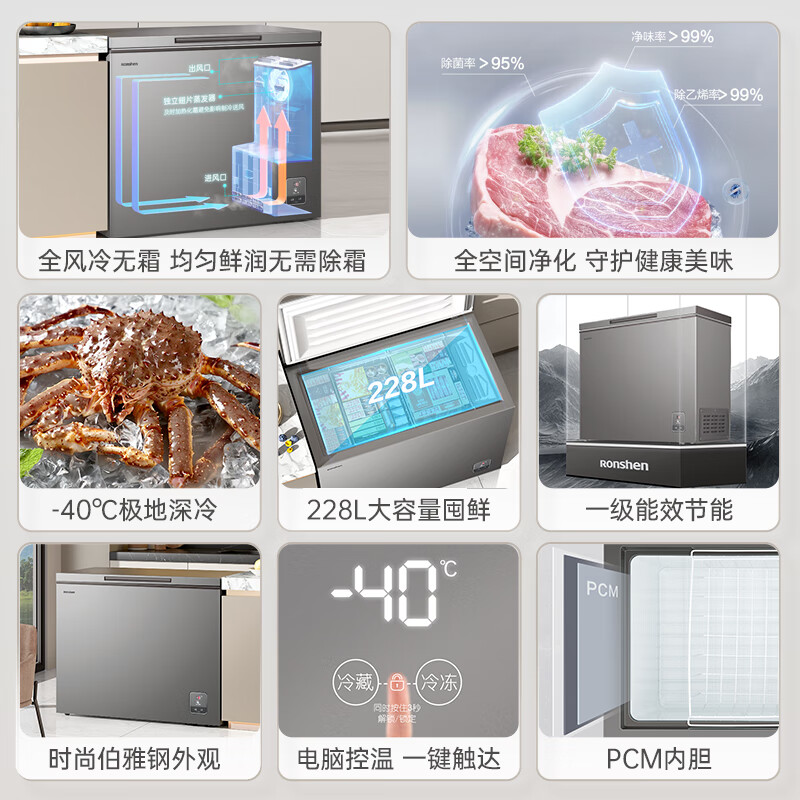 容声(Ronshen)228升风冷无霜冰柜一级能效冷藏冷冻单温冷柜 家商两用冰箱电脑控温BD/BC-228WMSY价格:1799.00元!