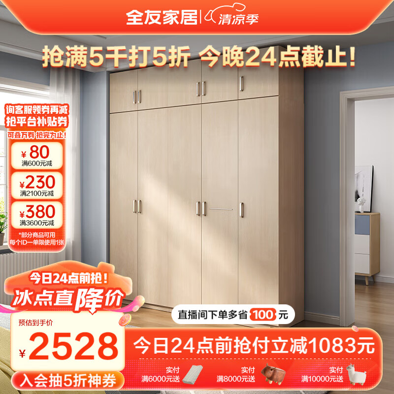 全友家居 衣柜自然原木风木纹衣柜多规格组合106302价格:3611.43元!