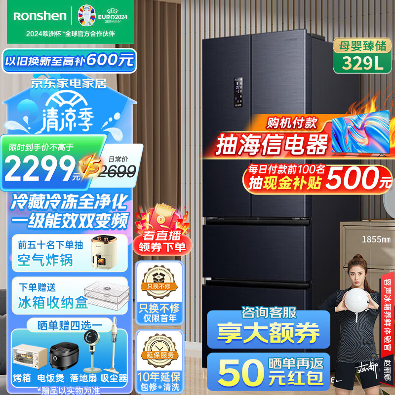 容声冰箱多门329升一级变频全空间净化法式四门家用净味大容量嵌入式冰箱BCD-329WD16MP[官方直发]价格:2149.00元!