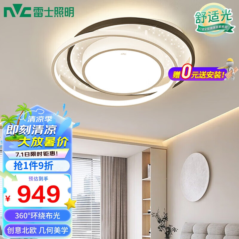 雷士(NVC)简约欧洲杯星空氛围感LED米家智能吸顶灯房间灯书房灯具-繁星圆灯价格:1054.00元!