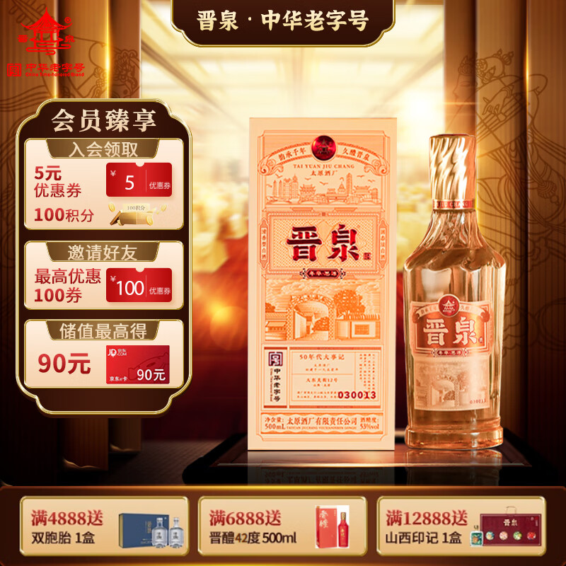晋泉年华-思源 高粱白酒 清香型白酒 53度 500ml 单瓶装 纯粮食酒价格:278.00元!