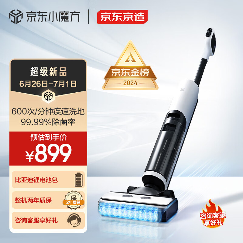 京东京造小虎鲸无线智能洗地机 洗拖吸一体 家用扫地吸尘拖地机 电解水除菌自清洁价格:1499.00元!