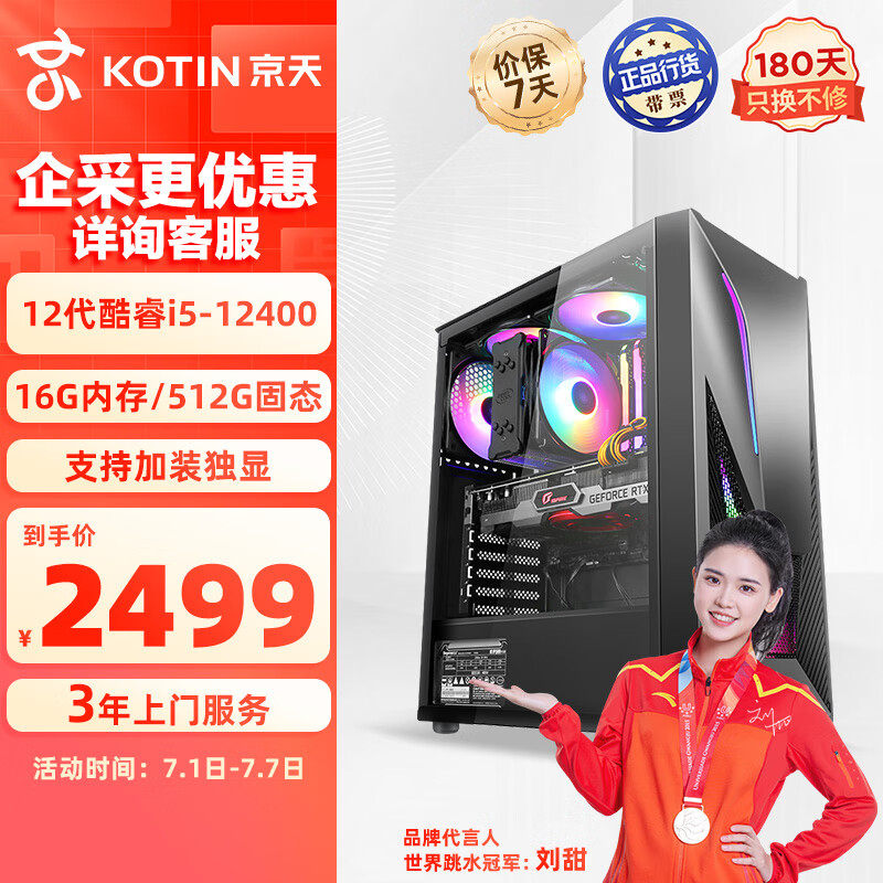 京天Blitz 505 i5-12400/16G D4/512G/商务键鼠 WiFi/电脑台式机DIY组装电脑整机游戏家用办公定制主机价格:2499.00元!