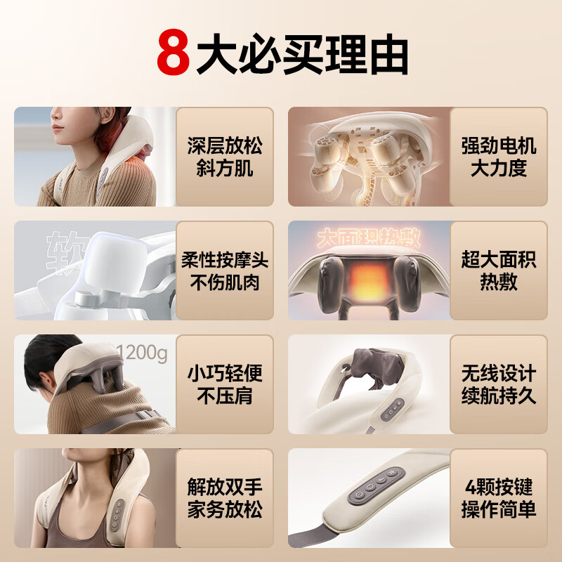 沃乐小米有品颈椎按摩器斜方肌肩颈热敷放松仪按摩披肩多功能腿腰背部 实用生日礼物男送女友爸妈价格:499.00元!