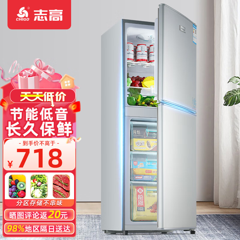 志高(CHIGO)冰箱小型家用 双门宿舍租房优选 冷藏冷冻双开门迷你电冰箱 节能保鲜低噪 BCD-177D 银色价格:748.00元!