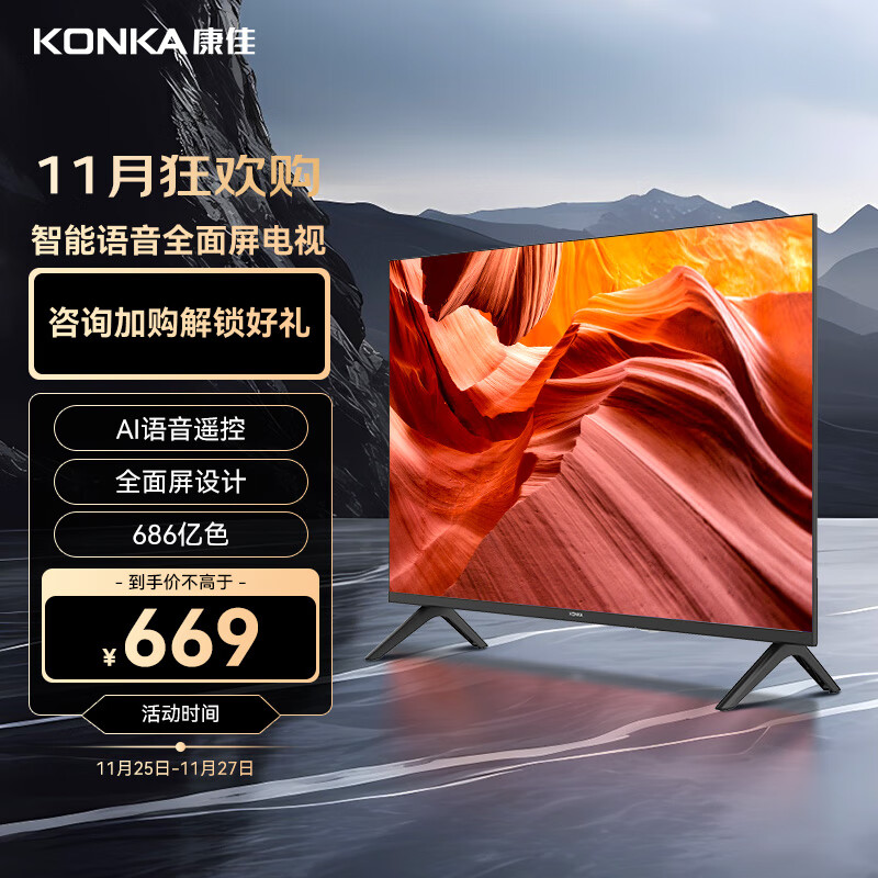 康佳电视 J32 32英寸 屏电视 1+8GB 教育电视 高清智能语音 液晶平板电视机 以旧换新价格:699.00元!
