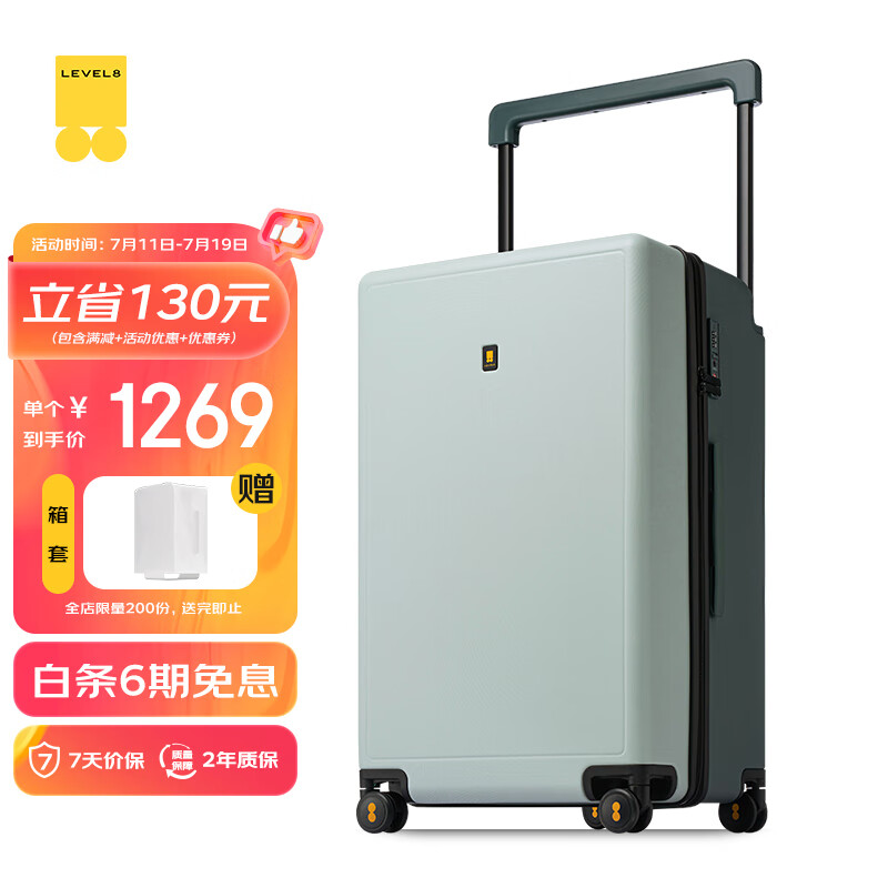 地平线8号(LEVEL8)行李箱男女密码拉杆箱 大旅行家大容量26英寸宽拉杆PC箱 抹茶撞色价格:1399.00元!