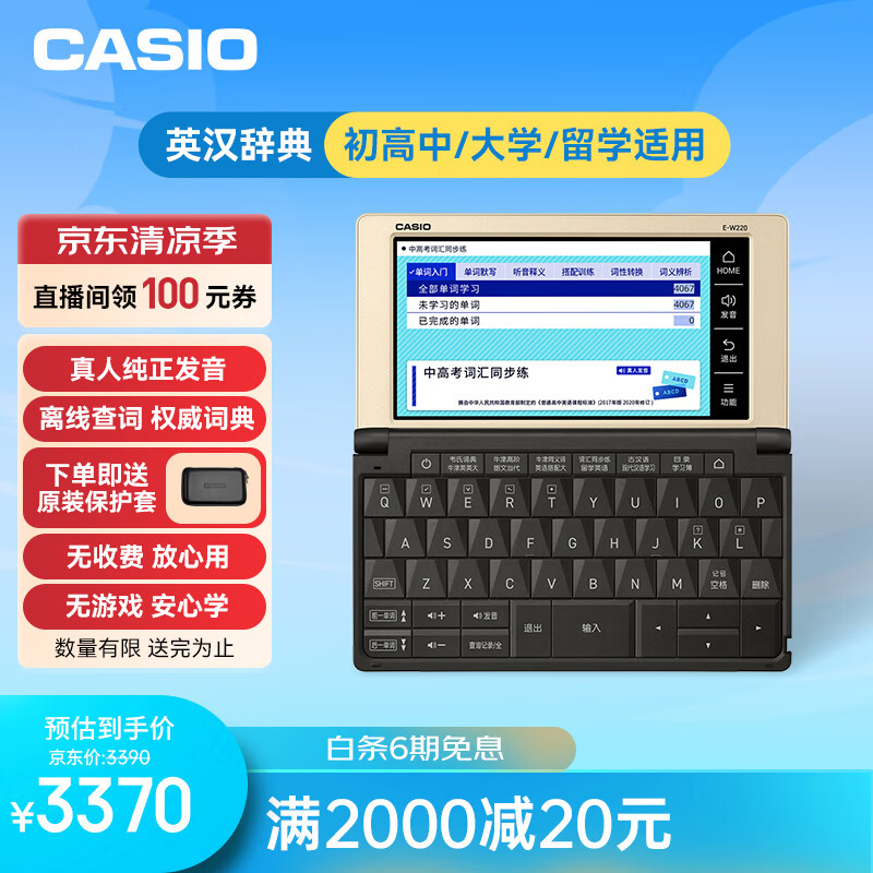 卡西欧(CASIO)卡西欧电子词典 E-W220GD 英汉电子辞典、初高中、大学、留学适用香槟金价格:3390.00元!