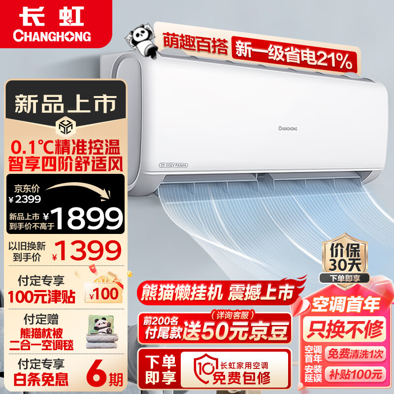 长虹(CHANGHONG)1.5匹新一级变频冷暖 独立除湿 空调挂机 精准控温 KFR-35GW/ZDCSW1+R1 以旧换新价格:1899.00元!