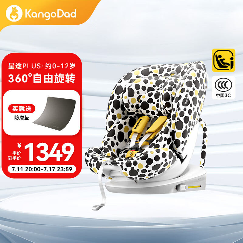袋鼠爸爸(EURO KIDS)I-SIZE级0-12岁360度90度悬停汽车儿童座椅 星途PLUS波点空间价格:1598.00元!