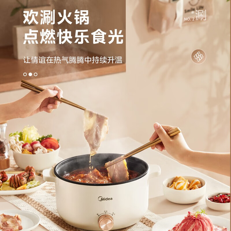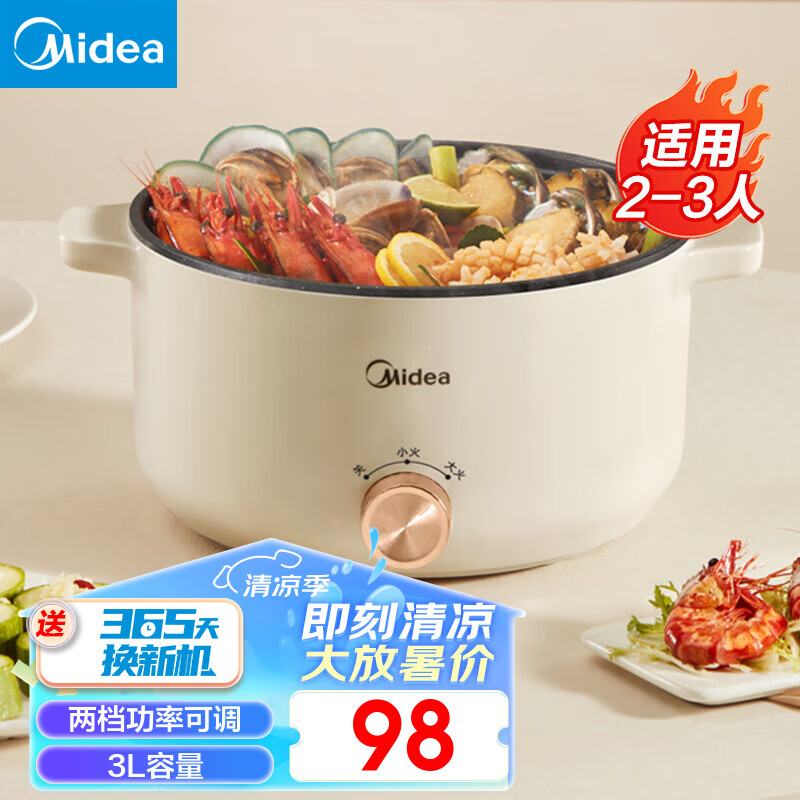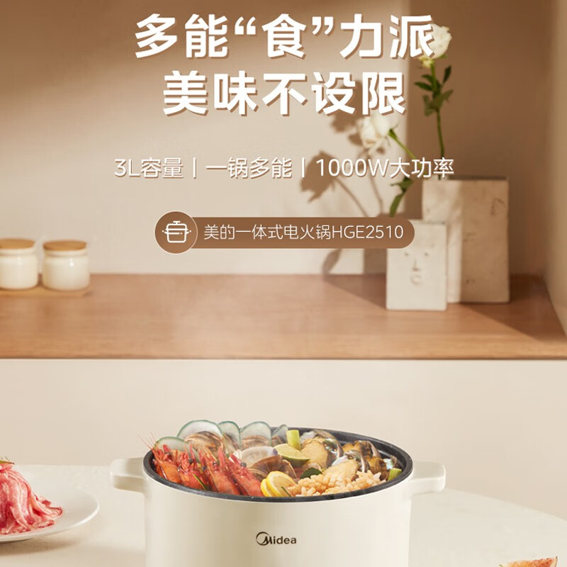 美的(Midea)电煮锅 电炒锅 电蒸锅家用多用途锅 宿舍小火锅 小电锅 3L小容量电热一体锅 电炖锅 泡面锅 MC-HGE2510 不带蒸笼 3L价格:159.00元!