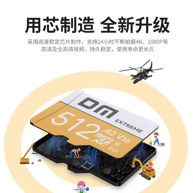 DM大迈 512GB TF(MicroSD)存储卡 金卡 A2 V30游戏手机行车记录仪监控摄像头多设备兼容高速内存卡价格:219.90元!
