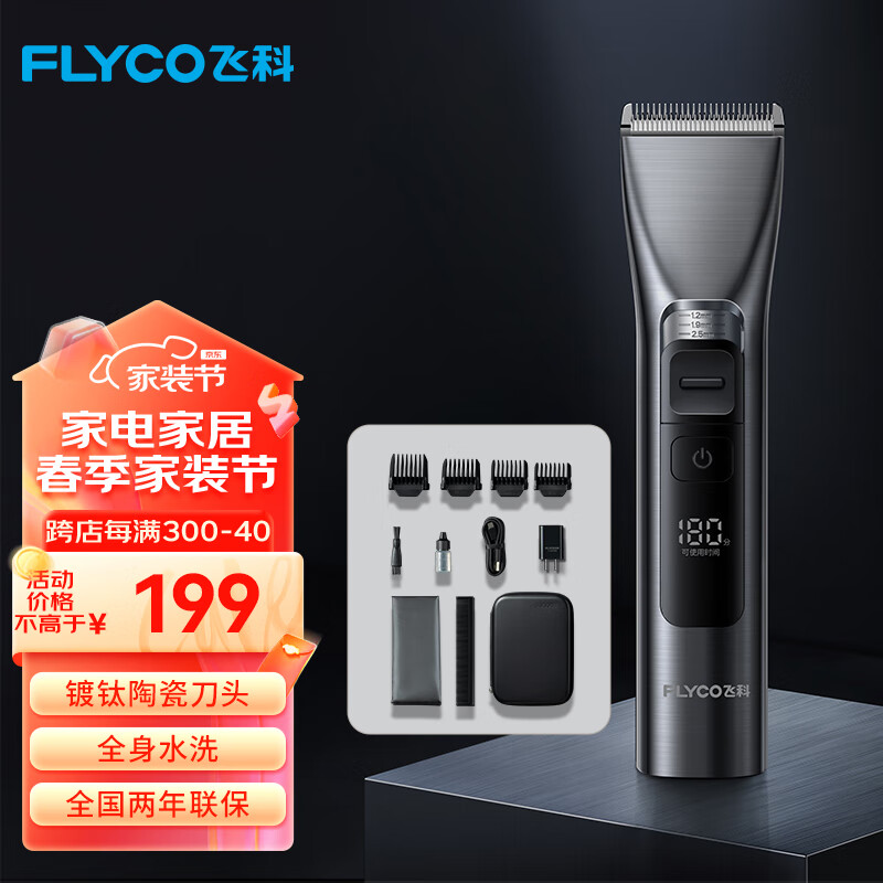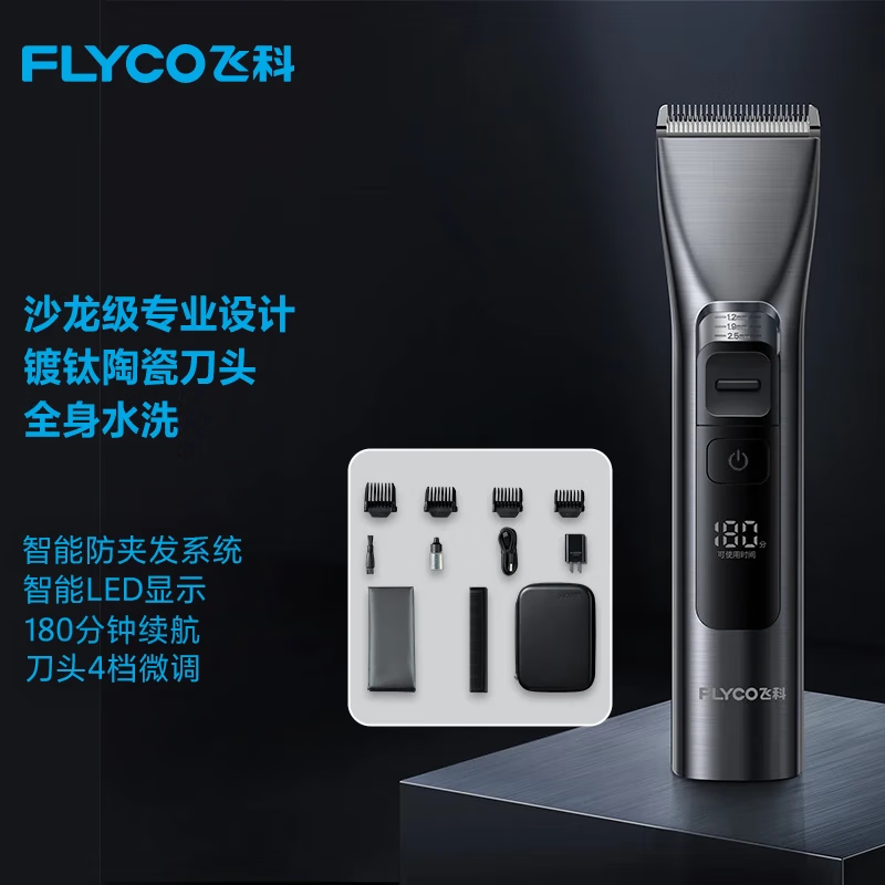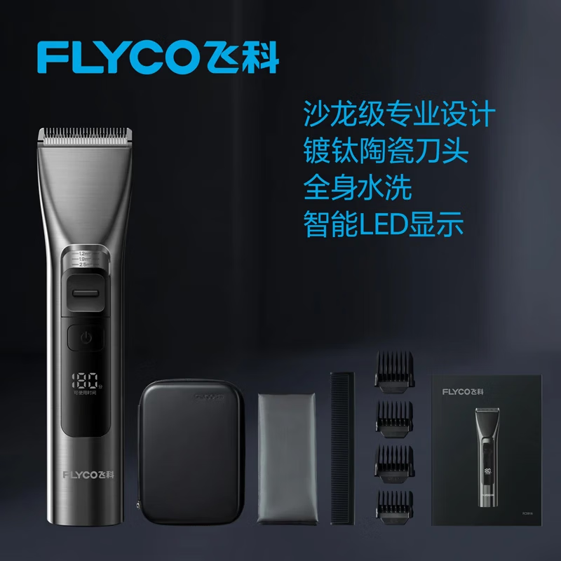 飞科(FLYCO)理发器电动智能成人儿童婴儿电推剪剃头刀电推子专业造型器美发专用全套工具套装镀钛陶瓷刀头 FC5916珐琅灰【银丝围布】价格:199.00元!