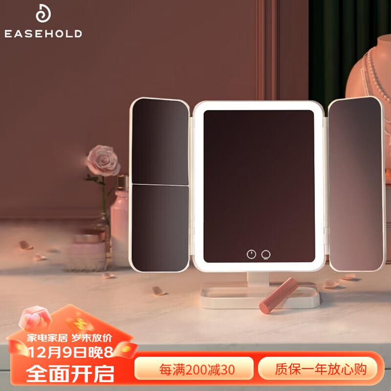 EASEHOLD化妆镜带灯led美妆梳妆贝壳镜子情人节圣诞礼物生日礼物送女友 开盖即亮【尊享款】白-3500mAh价格:269.00元!