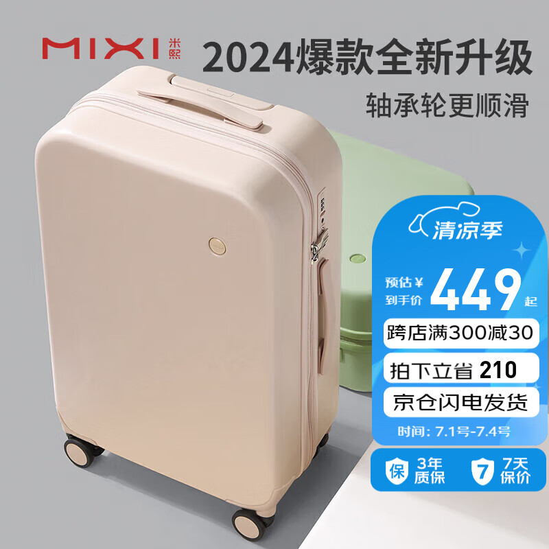 米熙高颜值拉杆箱子行李箱大容量旅行箱轴承轮密码箱26英寸淡山茱萸粉价格:659.00元!