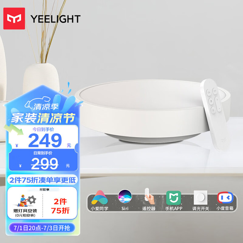 Yeelight智能LED吸顶灯 语音控制简约卧室客厅餐厅灯 调光调色价格:319.00元!