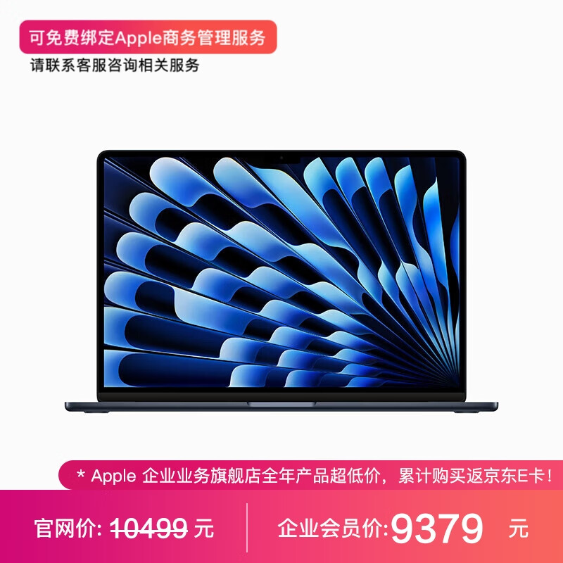 Apple MacBook Air 15.3英寸 8核M2芯片 (10核GPU) 8GB 256GB 午夜色 笔记本电脑 MQKW3CH/A【企业专享】价格:10499.00元!
