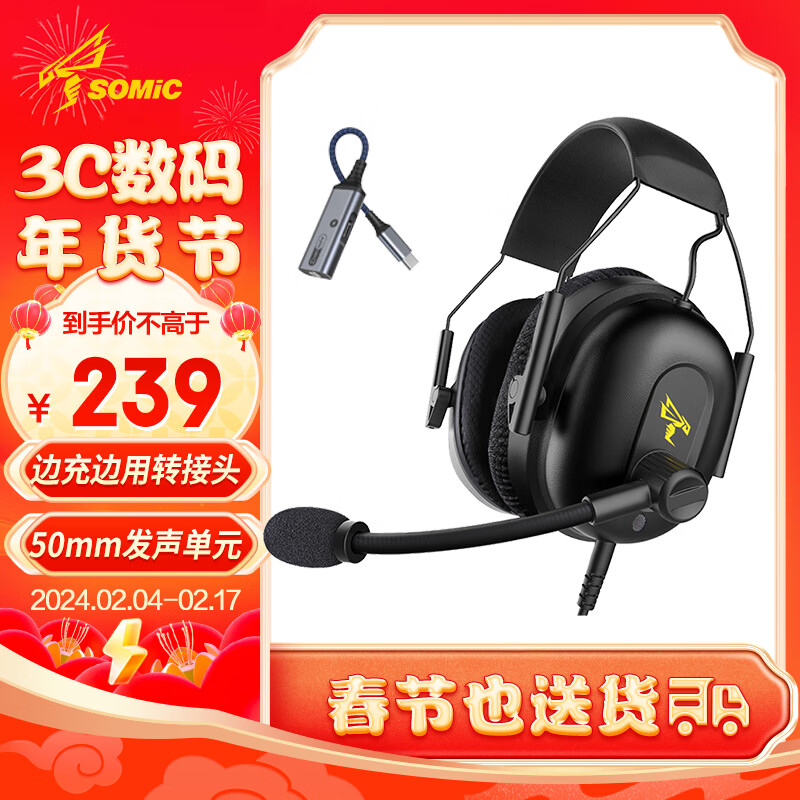 硕美科(SOMIC)G936赛事版游戏耳机电竞FPS降噪耳麦手游吃鸡听声辩位 黑色type-C版价格:239.00元!