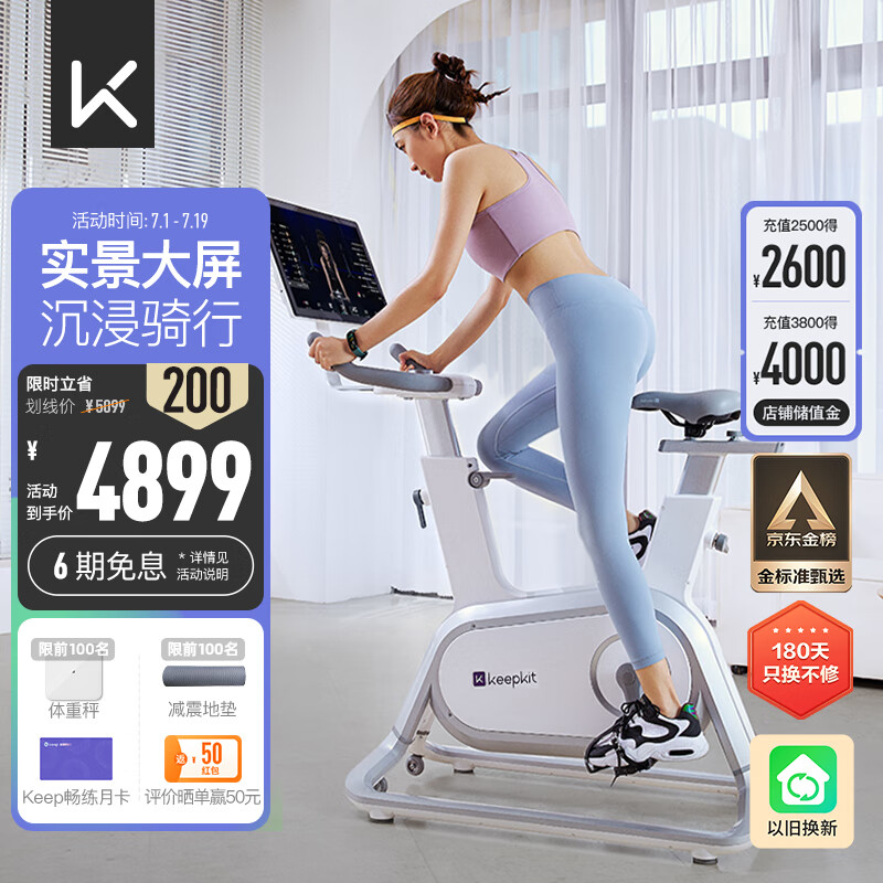 Keep动感单车C1 pro家用健身器智能调阻磁控室内脚踏自行车K0104A白价格:4899.00元!