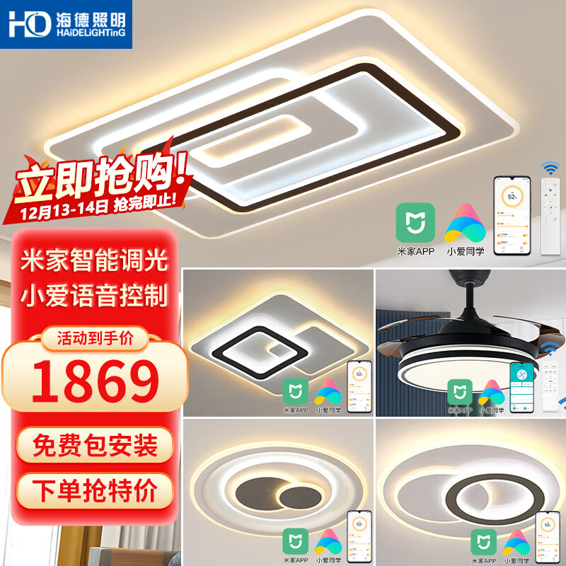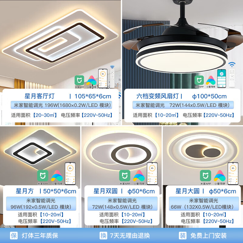 HD米家智能AI语音吸顶灯 led大客厅卧室全屋灯饰 包安装灯具套餐G价格:1869.00元!
