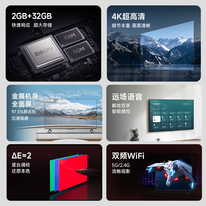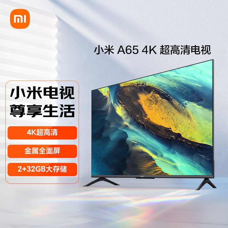 小米电视A65 2+32GB金属屏 双频WiFi 65英寸4K超高清液晶智能平板电视机L65MA-A价格:2399.00元!