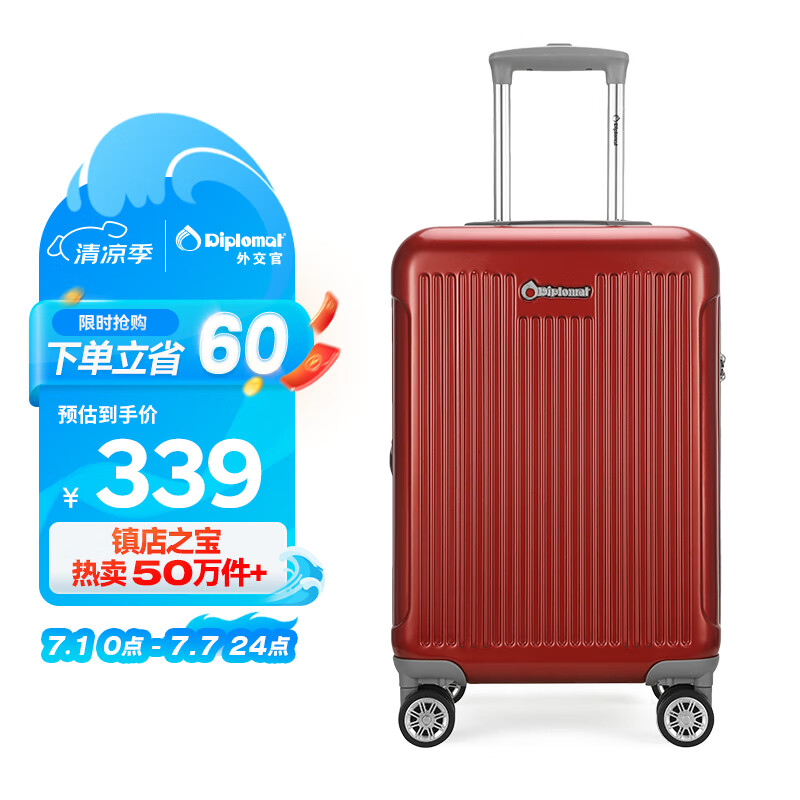 Diplomat外交官行李箱20英寸扩充层拉杆箱男登机旅行密码箱女TC-6012TM红价格:399.00元!
