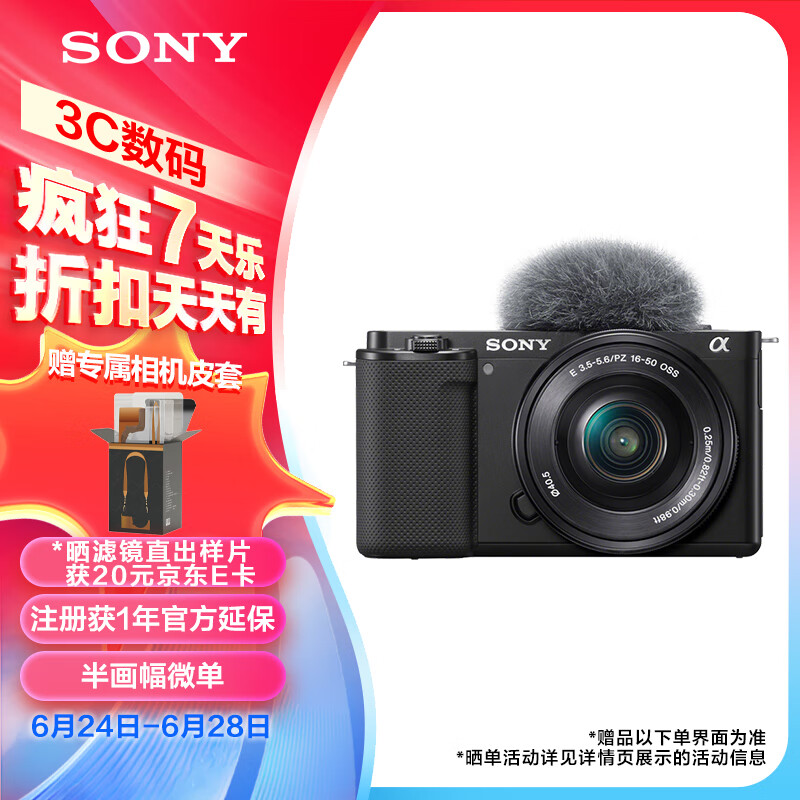 索尼(SONY)ZV-E10L 半画幅微单相机 标准镜头套装 美肤拍照 颜值机身 精准对焦 VLOG APS-C画幅 黑色价格:4999.00元!
