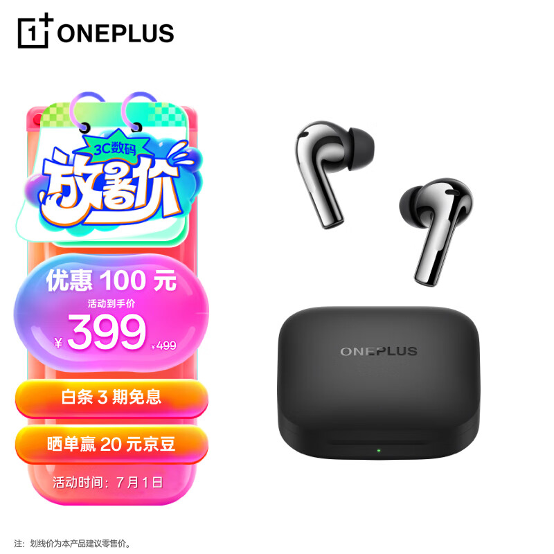 一加 Buds 3 真无线降噪蓝牙耳机 入耳式音乐运动电竞游戏耳机 通用oppo小米苹果华为手机 深空灰价格:399.00元!