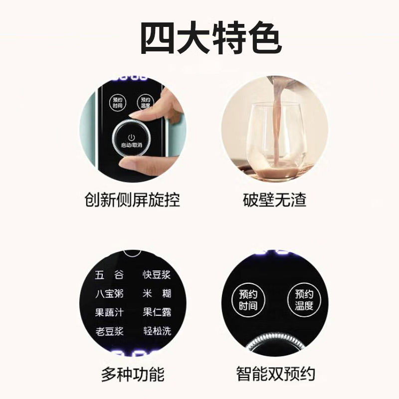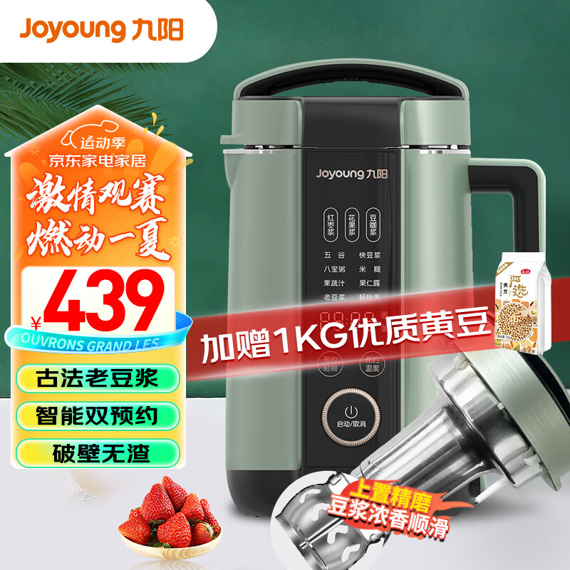 九阳(Joyoung)豆浆机1.3L 古法老豆浆 破壁免滤 创新侧屏旋控2-5人食 家用多功能可预约榨汁机料理机破壁机价格:439.00元!