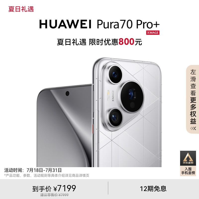HUAWEI Pura 70 Pro+ 光织银 16GB+512GB 超高速风驰闪拍 超聚光微距长焦 双卫星通信 华为P70智能手机价格:7199.00元!