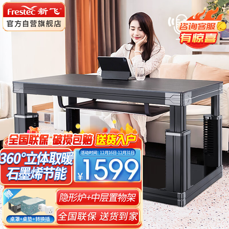新飞电暖桌1.38米长方形烤火炉茶几带语音控制升降取暖器家用电暖炉取暖桌多功能节能餐桌烤火桌XF-C6价格:1879.00元!