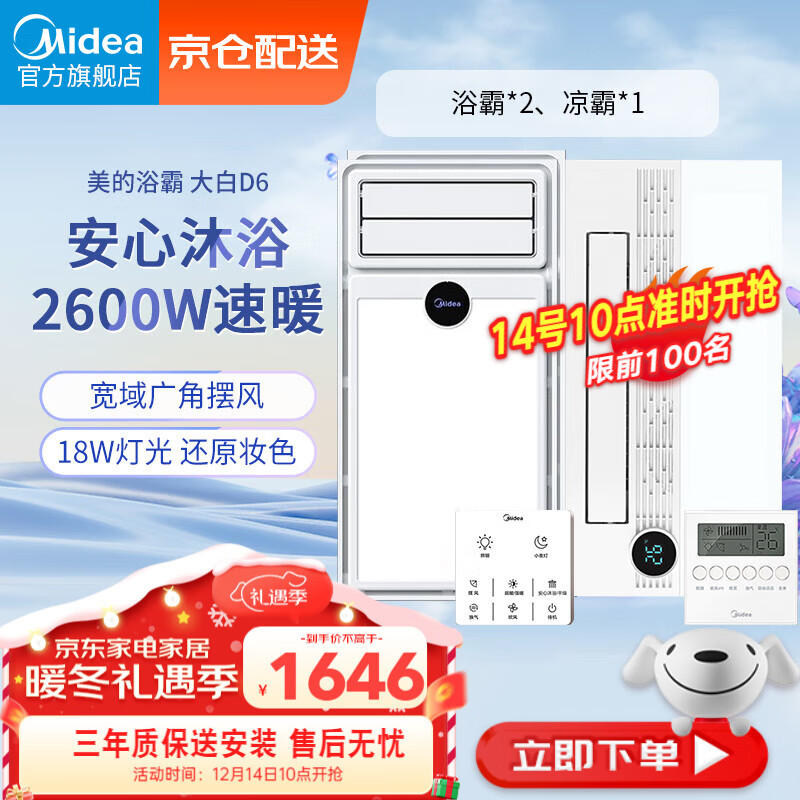美的(Midea)浴霸暖风照明排气一体集成吊顶换气浴室卫生间取暖器风暖价格:1694.00元!