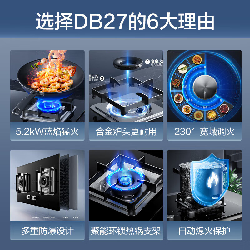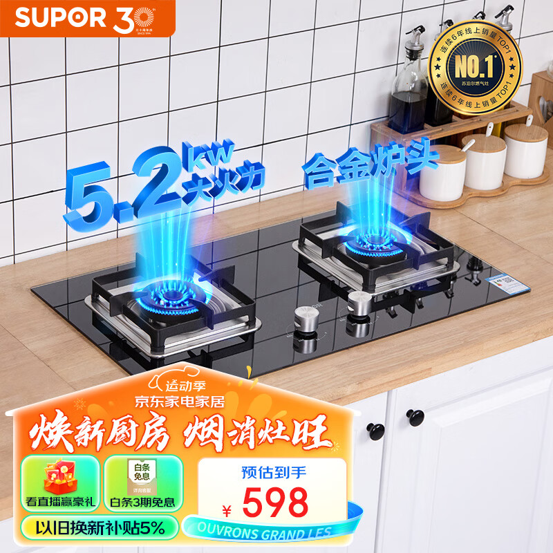 苏泊尔(SUPOR)家用燃气灶 双灶具5.2kW火力 63%热效率 宽域控火可拆卸炉头 聚能锅支架燃气灶具DB27液化气价格:598.00元!