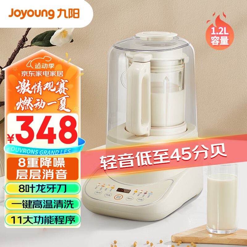 九阳轻音舱45分贝 1.2升低音 破壁机 家用豆浆机 柔音降噪榨汁机 一键高温清洗 L12-P761价格:348.00元!
