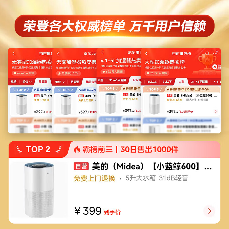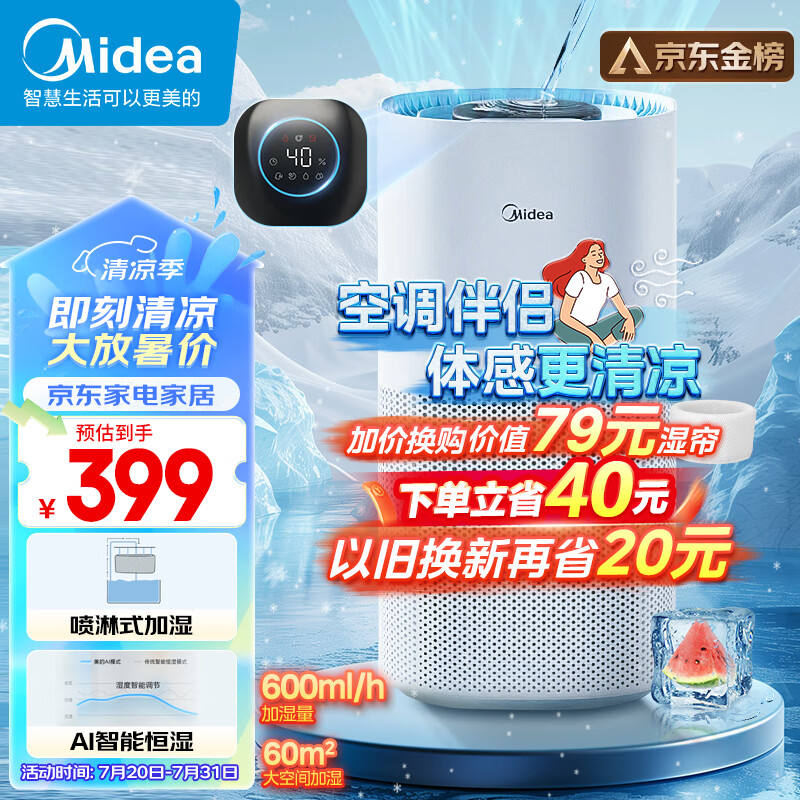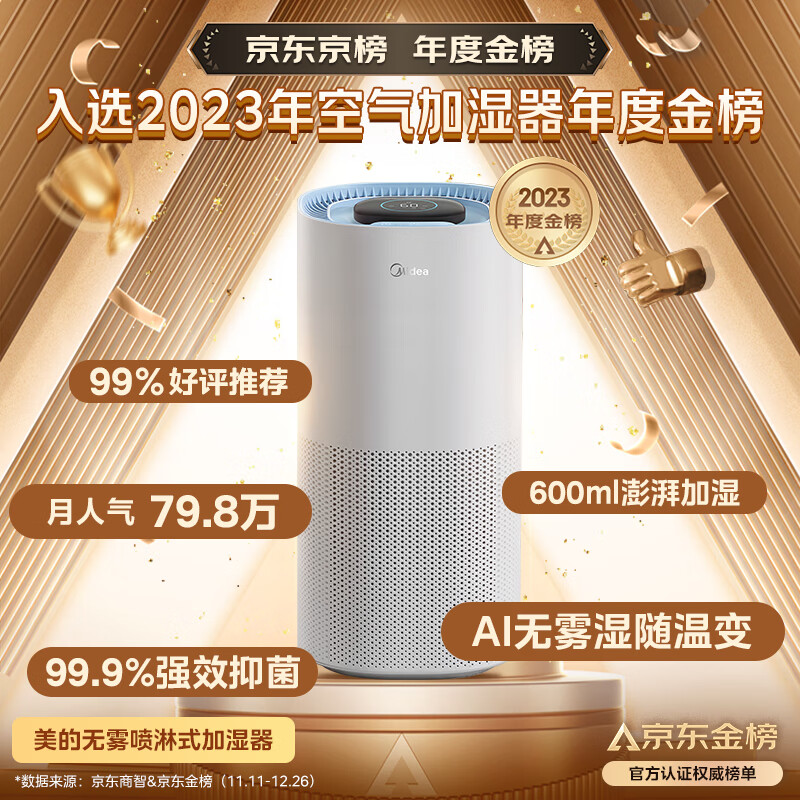 美的(Midea)【小蓝鲸600】无雾加湿器除菌卧室婴儿家用桌面加湿净化空气大面积商用保湿雾化器空调伴侣SZ-2Y50价格:539.00元!