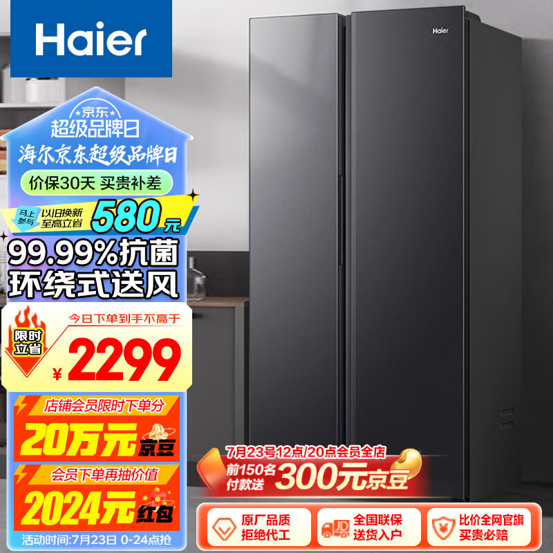 海尔(Haier)521升风冷无霜对开门双开门电冰箱家用双变频节能超薄嵌入式净味超大容量BCD-521WGHSSEDSD价格:2299.00元!