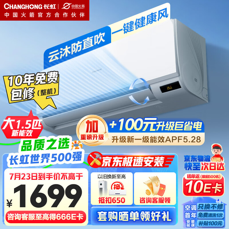 长虹(CHANGHONG)大1.5匹新能效省电变频冷暖舒适防直吹自清洁壁挂式卧室家用空调挂机 KFR-35GW/ZDAYW1+R3以旧换新价格:1699.00元!