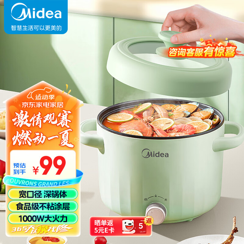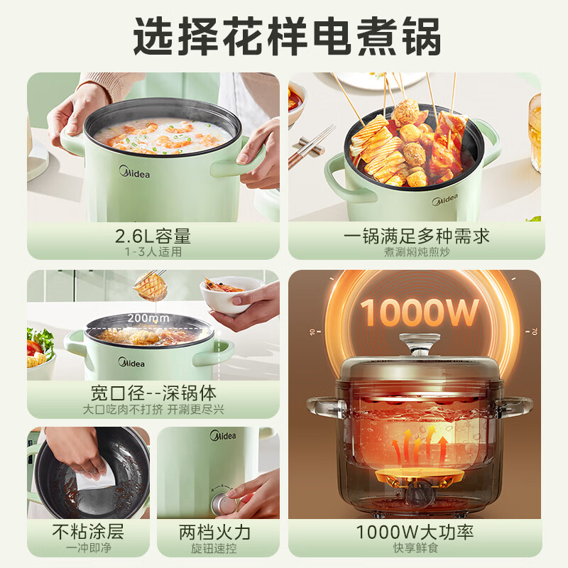 美的(Midea)电煮锅 电火锅 电热锅 电蒸锅 火锅锅 多用途锅 家用多功能锅 学生宿舍 租房 2.6L容量MC-XZE2056价格:99.00元!