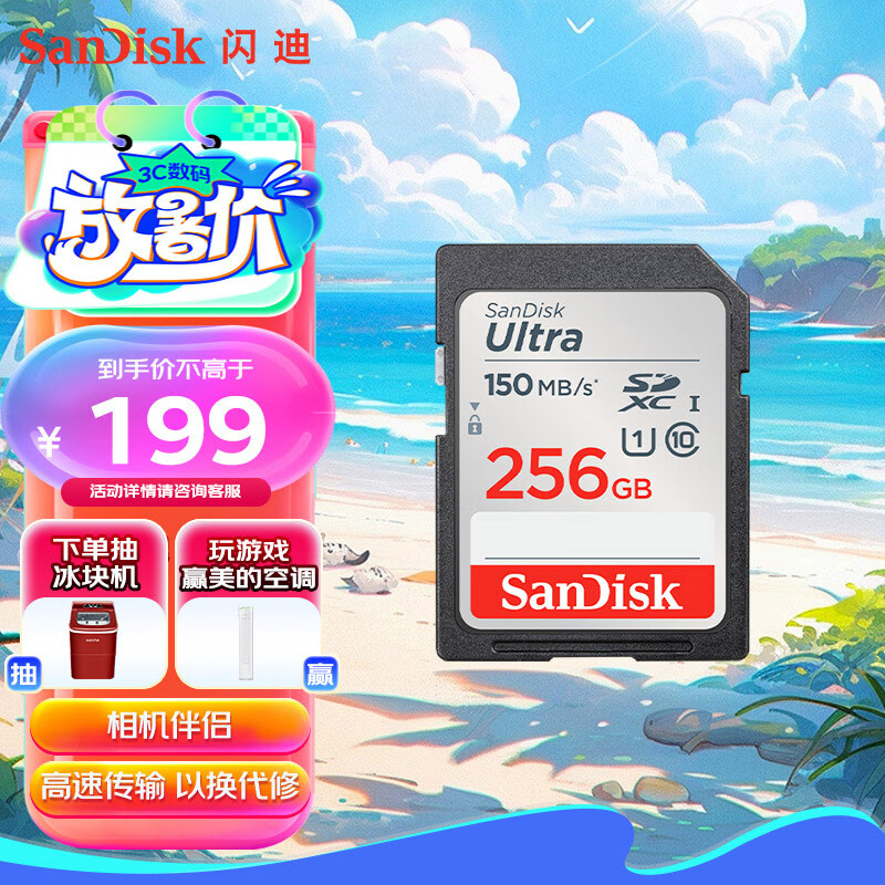 闪迪(SanDisk)256GB SD内存卡 U1 C10 高速存储卡 读速150MB/s 全高清视频 数码相机理想伴侣价格:199.00元!