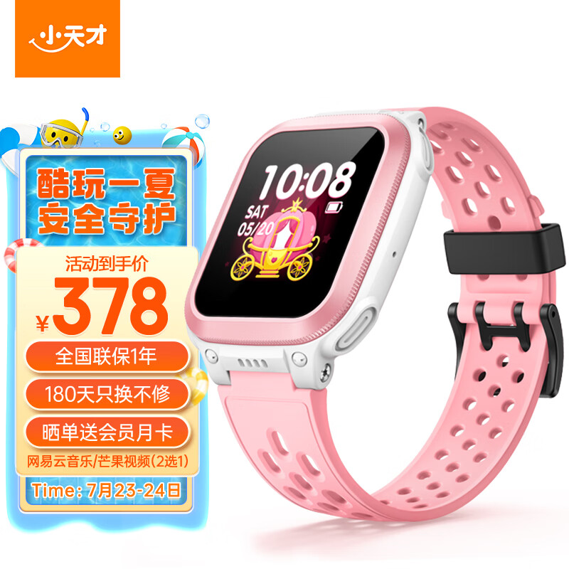 小天才儿童电话手表Q1R粉色长续航防水GPS定位智能手表 男女孩学生儿童移动联通电信4G手表男女表价格:378.00元!